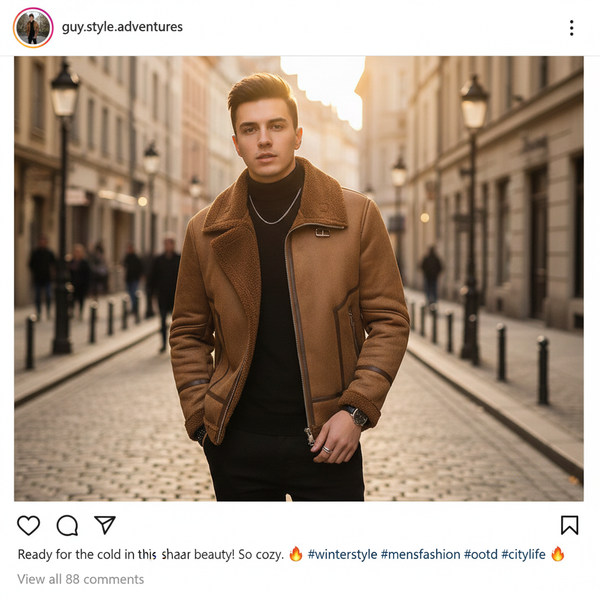 Men’s Genuine Leather Jacket – Slim Fit Black Cowhide & Sheepskin Bomber Style with Zipper Closure